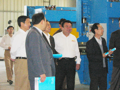 2005年5月6日上午,由安徽省經濟學會和馬鞍山市經濟學會一行數十人組成的代表團來我公司參觀考察,考察中代表們普遍對我公司數控機床產品產生了濃厚的興趣。我公司近年來通過引進荷蘭Delem公司生產的數控系統(目前國際鍛壓行業知名數控系統)而制造的各種數控機床,自投入市場以來一直反響熱烈。該代表團在考察中對我公司近年來的快速發展給予了肯定。