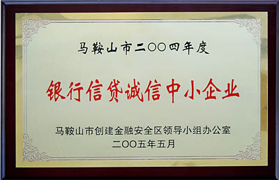 我公司獲馬鞍山市“銀行信貸誠信中小企業”