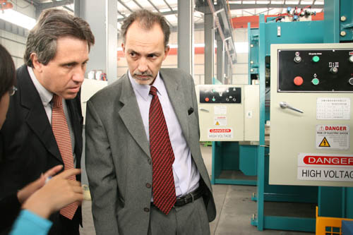 Aldo Strobbe Turk先生和Michael Can先生分別是秘魯一家專業(yè)機(jī)械進(jìn)出口公司的采購經(jīng)理和銷售經(jīng)理。他們此行的目的是對(duì)我公司進(jìn)行實(shí)地參觀考察,并尋求以中德在秘魯獨(dú)家代理的形式與中德達(dá)成合作意向。公司領(lǐng)導(dǎo)熱情地接待了兩位外商。公司領(lǐng)導(dǎo)首先給秘魯客商介紹了我公司近年來產(chǎn)品的研發(fā)、生產(chǎn)、銷售情況以及我公司產(chǎn)品在國內(nèi)外市場(chǎng)的影響和地位。隨后陪同外商參觀了成品車間并現(xiàn)場(chǎng)演示運(yùn)行了機(jī)器,裝配車間,大件車間和零件倉庫。參觀完后,兩位秘魯客商都對(duì)我公司產(chǎn)品的機(jī)型型號(hào)、生產(chǎn)制造技術(shù)、零配件等諸多方面非常滿意,并愿以在秘魯獨(dú)家代理的形式與中德建立長(zhǎng)期穩(wěn)定的合作關(guān)系。