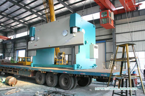 由于機器體積較大,高度超過3.5米,重量在50噸以上,所以采用了分體式運輸,工作臺與機器主體分離開來。這種大型機床由于其體積與重量的關(guān)系,并不是很常見,需求量相對來講少點,而對制造商的要求也相對比較高,其中無不體現(xiàn)中德產(chǎn)品在客戶心目中認可度!