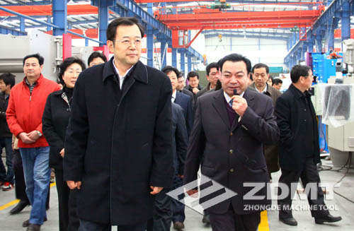 孫志剛副省長認真的參觀了中德機床一萬平方的裝配車間,他關切的詢問了鄭總關于中德機床的歷史來源,生產銷售情況,以及市場前景。鄭總也很熱情的向孫志剛副省長匯報了情況:中德機床歷史十余年,名字的寓意是我公司是中國的企業但是目標是為追求德國卓越的產品品質以及體現我公司“以德治企”的管理理念。公司近幾年來的快迅發展,雖然離不開公司一直以來的勵精圖治工作態度,更離不開的是省內外發展的大背景,和中國開放的國際眼光。中德機床內貿外貿并舉,業績逐年穩步上升,勢頭良好。孫志剛副省長頻頻微笑點頭,對中德機床的企業狀況感到欣慰。同時,孫志剛副省長也激勵我公司,一定要抓住機遇,繼續發展。